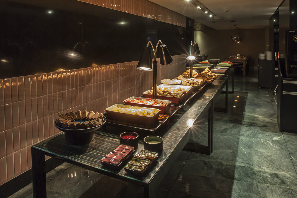 O cardápio do café da manha do restaurante é composto por mais de 60 itens, para atender as necessidades dos nossos hóspedes, temos pão sem glúten, chia, linhaça, deliciosos croissants assados na hora e servidos quentinhos, bolos caseiros produzidos no próprio Hotel.