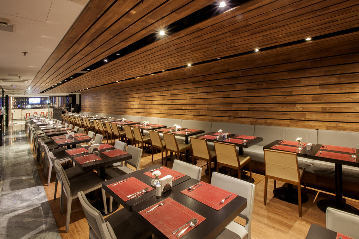 Com uma cozinha contemporânea que agrada a todos os paladares, o restaurante oferece serviço atencioso em um ambiente contemporâneo e intimista, todo revestido em madeira. As mesas possuem tamanhos variados, ideais para grupos grandes ou pequenos.
